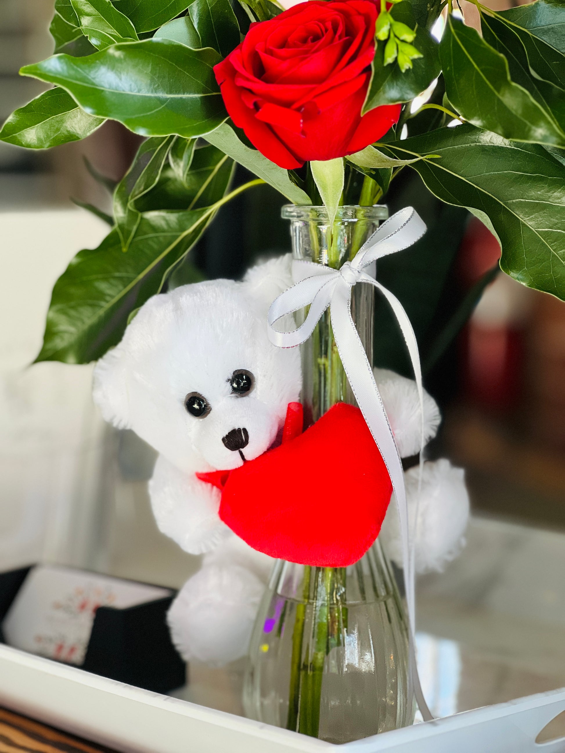 Elevate your flower arrangements with our adorable Buddy Bear for flower vases. Whether accompanying a vase or given as a stand-alone gift, these teddy bears provide the perfect touch of comfort and convey a heartfelt message of love.